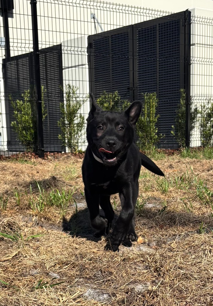 A dog is running in the outdoor play area at the Pet Alliance of Greater Orlando. Image courtesy of the Pet Alliance of Greater Orlando.
