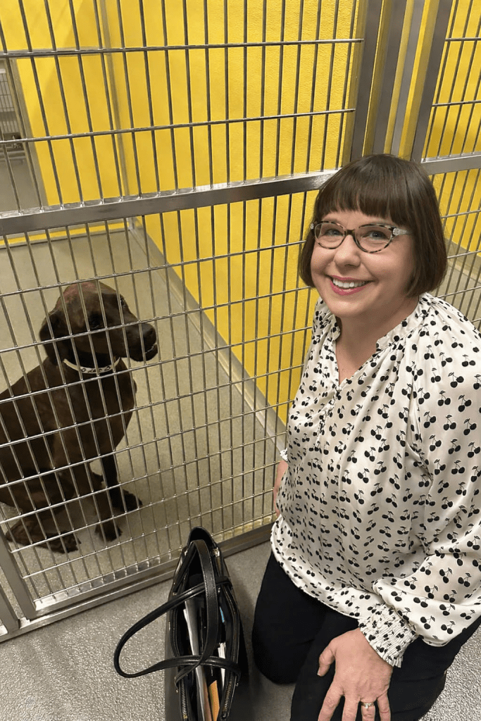 I’m striking a pose with Joy, a two-year-old mixed-breed dog, that is super sweet and looking for a forever family at the Pet Alliance of Greater Orlando. Image courtesy of Sandra Carr.